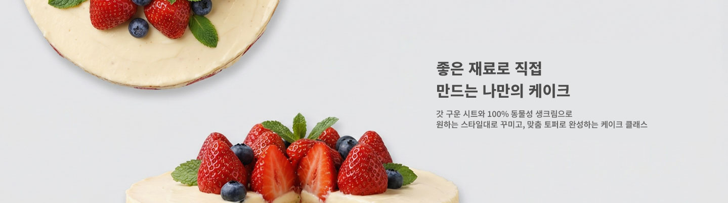 갓 구운 시트와 100% 동물성 생크림을 사용해 기본부터 창작까지 직접 경험하는 프리지에 케이크 클래스입니다.